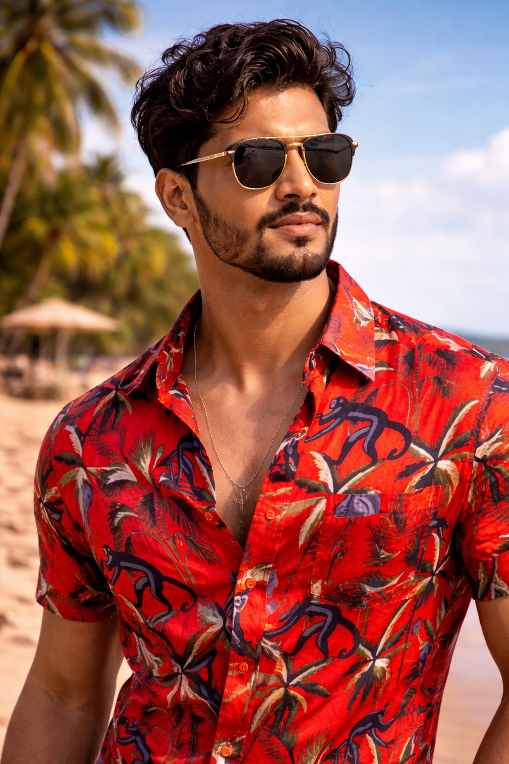 This premium printed shirt is crafted from breathable cotton and designed for men who like their style confident, wild, and unforgettable. Featuring a striking red base with jungle-inspired monkey and palm motifs, it’s perfect for vacations, beach parties, and relaxed summer evenings.